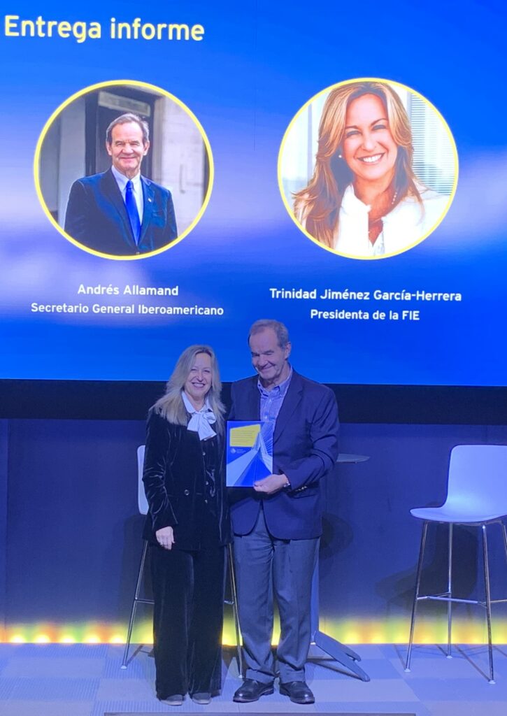 Presentación y entrega oficial al Secretario General Iberoamericano, Andrés Allamand, por la Presidenta de la Fundación Iberoamericana Empresarial, Trinidad Jiménez, del documento elaborado desde FIE,